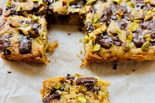 Chocolate Pistachio Bars + Roasted Chickpeas